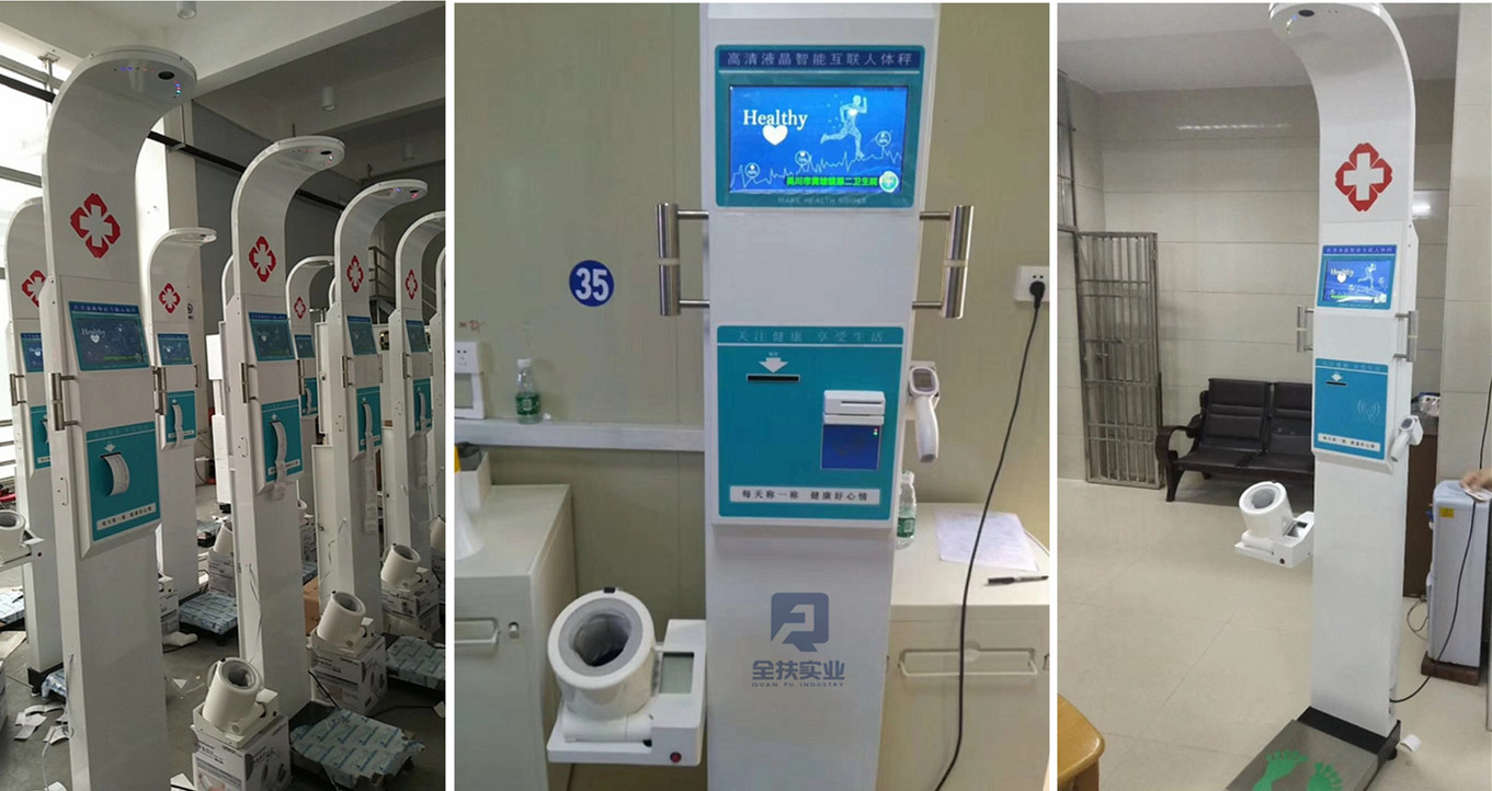 Automatic measurement of height, weight, body mass index, blood pressure, heart rate, intelligent voice, LCD multimedia advertising (Video + picture + wechat promotion), intelligent interconnection (wechat / WiFi / 3G / RS232 / Bluetooth / APP / cloud interface)